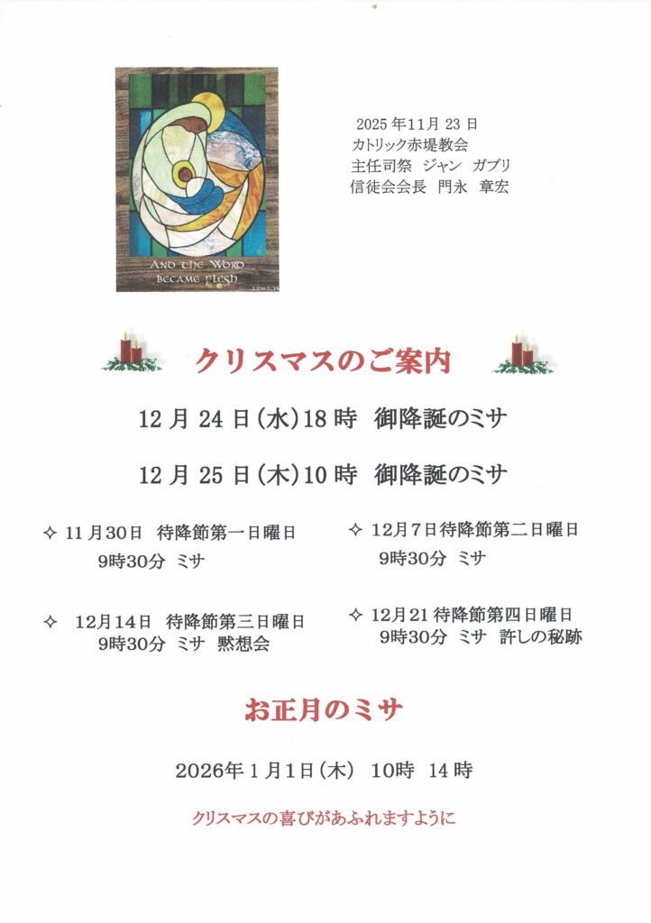 ガブリ神父様は2025/5/27-2025/6/27、休暇でカナダに一時帰国されます。